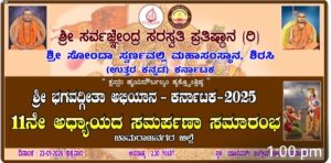 ಶ್ರೀ ಸರ್ವಜ್ಞೇಂದ್ರ ಸರಸ್ವತಿ ಪ್ರತಿಷ್ಠಾನ, ಶ್ರೀ ಸೋಂದಾ ಸ್ವರ್ಣವಲ್ಲಿ ಮಹಾಸಂಸ್ಥಾನ, ಶಿರಸಿ ಉತ್ತರ ಕನ್ನಡ, ಕರ್ನಾಟಕ. ಶ್ರೀ ಭಗವದ್ಗೀತಾ ಅಭಿಯಾನ ಕಾರ್ಯಕ್ರಮದ ಮೂಲಕ ರಾಜ್ಯದ ಮೂಲೆ ಮೂಲೆಗಳಲ್ಲೂ ಕೋಟ್ಯಾಂತರ ವಿದ್ಯಾರ್ಥಿಗಳು, ನಾಗರಿಕರು ಭಗವದ್ಗೀತೆ ಪಾರಾಯಣ ಮಾಡುವ ಮೂಲಕ ಆತ್ಮಜ್ಞಾನವನ್ನು ಉಜ್ವಲಗೊಳಿಸಿಕೊಂಡು ಶ್ರೇಷ್ಠವಾದ ಜೀವನ ನಡೆಸಲು ಉತ್ತಮ ನಾಗರಿಕರಾಗಿ ಬದುಕಲು ಸಾಧ್ಯವಾಗುವ ಭಗವದ್ಗೀತೆಯ ನಿರಂತರ ಪಾರಾಯಣ ಕಾರ್ಯಕ್ರಮವನ್ನು ರೂಪಿಸುತ್ತಿದೆ. 2025 ರಲ್ಲಿ 11ನೇ ಅಧ್ಯಾಯವನ್ನು ಇಡೀ ರಾಜ್ಯದ ಕೋಟ್ಯಾಂತರ ವಿದ್ಯಾರ್ಥಿಗಳು ಅರ್ಥ ಮಾಡಿಕೊಳ್ಳುವ ಮೂಲಕ ತಮ್ಮ ಜೀವನ ಪಥಕ್ಕೆ ಉತ್ತಮ ಮಾರ್ಗವನ್ನು ಕಲ್ಪಿಸಿಕೊಂಡಿದ್ದಾರೆ. ಭ