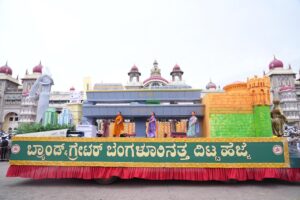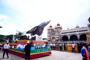 ಕ್ಯಾಪ್ಟನ್ ಅಭಿಮನ್ಯು ಆನೆ ಅರಮನೆ ಬಳಿಯಿಂದ ಚಿನ್ನದ ಅಂಬಾರಿಯನ್ನು ಹೊತ್ತು ಕೆ.ಆರ್.ವೃತ್ತ, ಸಯ್ಯಾಜಿರಾವ್ ರಸ್ತೆ, ಆಯುರ್ವೇದಿಕ್ ವೃತ್ತ,