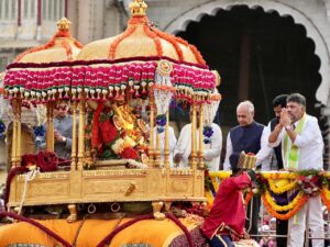 ಅಂಬಾವಿಲಾಸ ಅರಮನೆ ಆವರಣದಲ್ಲಿ ಸಂಜೆ 4.42 ರಿಂದ 5.06 ರವರೆಗೆ ಸಲ್ಲುವ ಶುಭ ಲಗ್ನದಲ್ಲಿ ಮುಖ್ಯಮಂತ್ರಿ ಸಿದ್ದರಾಮಯ್ಯ, ಡಿಸಿಎಂ ಡಿ.ಕೆ. ಶಿವಕುಮಾರ್, ಸಚಿವರಾದ ಡಾ.ಎಚ್.ಸಿ. ಮಹದೇವಪ್ಪ,