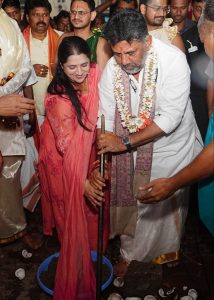 ಮಂತ್ರಾಲಯ ಪುಣ್ಯಕ್ಷೇತ್ರಕ್ಕೆ ಉಪಮುಖ್ಯಮಂತ್ರಿ ಡಿ.ಕೆ ಶಿವಕುಮಾರ್ ಸೇರಿದಂತೆ ಅವರ ಪತ್ನಿ ಜೊತೆ ಭೇಟಿ ನೀಡಿ, ಶ್ರೀ ಗುರುರಾಘವೇಂದ್ರ ಸ್ವಾಮಿಗಳ ದಿವ್ಯ ದರ್ಶನ ಪಡೆದು, ವಿಶೇಷ ಪೂಜೆ ಹಾಗೂ ತುಲಾಭಾರ ಸೇವೆ ನೆರವೇರಿಸಿದರು.