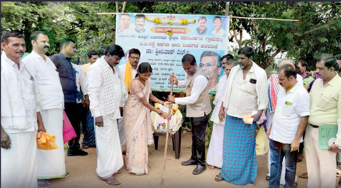 ವಿಧಾನಸಭಾ ಕ್ಷೇತ್ರದ ಶಾಸಕ ಡಾ. ಶ್ರೀನಿವಾಸ್ ಎನ್ ಟಿ ರವರು  ನರಸಿಂಹಗಿರಿ ಕರಡಿಹಳ್ಳಿ ಭೀಮಸಮುದ್ರ ಗೆದ್ದಲಗಟ್ಟಿ ಮಾತನಾಡುಕು ಎಂ ಬಿ ಅಯ್ಯನಹಳ್ಳಿ ಚಿಕ್ಕಜೋಗಿಹಳ್ಳಿ ಮಡಕಲಕಟ್ಟೆ ಗ್ರಾಮಗಳಲ್ಲಿ ಸಿಸಿ ರಸ್ತೆ ಹಾಗೂ ಶಾಲಾ ಕಟ ಉನ್ನತೀಕರಣ ಮತ್ತು ಡಾಂಬರೀಕರಣಕ್ಕೆ ಗುದ್ದಲಿ ಪೂಜೆ ಸಲ್ಲಿಸಿ ಮಾತನಾಡಿ ನಾನು ಚುನಾವಣೆ ಸಂದರ್ಭದಲ್ಲಿ ಕ್ಷೇತ್ರದ ಎಲ್ಲಾ ಹಳ್ಳಿಗಳಿಗೆ ಭೇಟಿ ನೀಡಿ ಅಲ್ಲಿನ ಸಮಸ್ಯೆಗಳನ್ನು ಹಾಲಿಸಿ ಇಂದು ನಮ್ಮ ಕ್ಷೇತ್ರದಲ್ಲಿ ಹೆಚ್ಚಿನ ಮಟ್ಟದ ಅನುದಾನ ತಂದು ಭೂಮಿ ಪೂಜೆ ಸಲ್ಲಿಸಿದ್ದೇನೆ.
