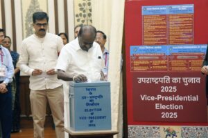 ನವದೆಹಲಿ 2025ರ ಉಪರಾಷ್ಟ್ರಪತಿ ಚುನಾವಣೆಯಲ್ಲಿ ಪ್ರಧಾನಮಂತ್ರಿ ನರೇಂದ್ರ ಮೋದಿ, ಮಾಜಿ ಪ್ರಧಾನಿ ಹೆಚ್.ಡಿ ದೇವೇಗೌಡ, ಕೇಂದ್ರ ಉಕ್ಕು ಮತ್ತು ಬೃಹತ್ ಕೈಗಾರಿಕೆ ಸಚಿವ ಹೆಚ್.ಡಿ ಕುಮಾರಸ್ವಾಮಿ ಅವರುಗಳು ಮತ ಚಲಾಯಿಸಿದರು.