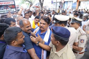 ಉಗ್ರರಿಗೆ, ಜೈಲು ಶಿಕ್ಷೆಯಲ್ಲಿರುವ ಅಪರಾಧಿಗಳಿಗೆ ರಾಜಾತಿಥ್ಯ ನೀಡುತ್ತಿರುವ ಕರ್ನಾಟಕ ಕಾಂಗ್ರೆಸ್ ಸರ್ಕಾರದ ವಿರುದ್ಧ ಬೃಹತ್ ಪ್ರತಿಭಟನೆ ನಡೆಸಿ ಮುಖ್ಯಮಂತ್ರಿಗಳ ನಿವಾಸಕ್ಕೆ ಮುತ್ತಿಗೆ ಹಾಕಲಾಯಿತು.