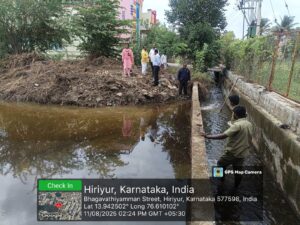 ಮರುದಿನ ಬೆಳಿಗ್ಗೆಯಿಂದಲೇ ನಗರಸಭೆ ಪೌರಾಯುಕ್ತರು ಆರೋಗ್ಯ ನಿರೀಕ್ಷಕರು ಪೌರಕಾರ್ಮಿಕರು ಸೇರಿ ಹಿಟಾಚಿ ಮತ್ತು ಜೆಸಿಬಿಗಳನ್ನು ಬಳಸಿ ರಾಜಕಾಲುವೆಯಲ್ಲಿ ಹೂಳು, ಕಸ, ಕಡ್ಡಿ ಸೇರಿದಂತೆ ಇತರೆ ಘನ ತ್ಯಾಜ್ಯವನ್ನು ತೆಗೆಯುವ ಮೂಲಕ ಸರಾಗವಾಗಿ ನೀರು ಹೋಗುವಂತೆ ಮಾಡಿದ್ದಾರೆ.
