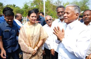 ಚಿತ್ರದುರ್ಗ-ತುಮಕೂರು ಹೊಸ ರೈಲು ಮಾರ್ಗ ಯೋಜನೆಯ ಹಿನ್ನೆಲೆ ಮೋಟಾರ್ ಟ್ರ್ಯಾಲಿ ಮೂಲಕ ಮಾರ್ಗ ಪರಿಶೀಲನೆ ನಡೆಸಿದ ನಂತರ ಆನಗೋಡು ಗ್ರಾಮದಲ್ಲಿ ಆಯೋಜಿಸಲಾದ ವೇದಿಕೆ ಕಾರ್ಯಕ್ರಮದಲ್ಲಿ ವಿವಿಧ ಅಭಿವೃದ್ಧಿ ವಿಷಯಗಳ ಕುರಿತು ದಾವಣಗೆರೆ ಸಂಸದೆ ಡಾ.ಪ್ರಭಾ ಮಲ್ಲಿಕಾರ್ಜುನ್ ಮನವಿ ಸಲ್ಲಿಸಿದರು.