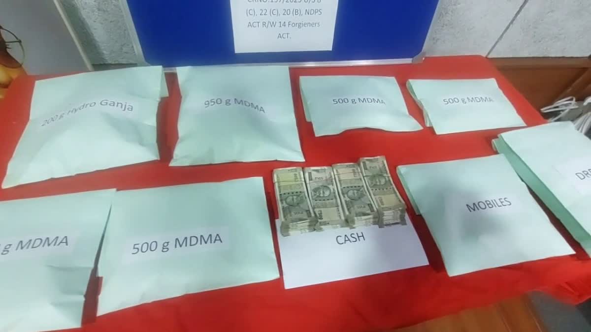 ಆರೋಪಿಗಳಿಂದ ಅಕ್ರಮವಾಗಿ ಶೇಖರಿಸಿ ಇಟ್ಟಿದ್ದ ನಿಷೇಧಿತ ಮಾದಕ ವಸ್ತುಗಳಾದ MDMA Crystal 2 ಕೆಜಿ 820 ಗ್ರಾಂ, 07 ಮೊಬೈಲ್ ಫೋನ್​ಗಳು, 02 ತೂಕದ ಯಂತ್ರ ಮತ್ತು 2,06,870 ಲಕ್ಷ ರೂಪಾಯಿ ನಗದು ಜಪ್ತಿ ಮಾಡಲಾಗಿದೆ. ಒಟ್ಟು ಮೌಲ್ಯ 04.50 ಕೋಟಿ ಮೌಲ್ಯದ ಮಾದಕ ದ್ರವ್ಯ ಜಪ್ತಿ ಮಾಡಲಾಗಿದೆ ಎಂದು ತಿಳಿಸಿದ್ದಾರೆ.