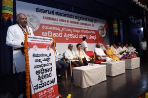 ಐಎ್ಡಬ್ಲ್ಯುಜೆ ಅಧ್ಯಕ್ಷ ಬಿ.ವಿ.ಮಲ್ಲಿಕಾರ್ಜುನಯ್ಯ, ಕೆಯುಡಬ್ಲೂಜೆ ರಾಜ್ಯ ಉಪಾಧ್ಯಕ್ಷರಾದ ಎಚ್.ಬಿ.ಮದನಗೌಡ, ಮತ್ತಿಕೆರೆ ಜಯರಾಂ, ಅಜ್ಜಮಾಡ ಕುಟ್ಟಪ್ಪ, ಪ್ರಧಾನ ಕಾರ್ಯದರ್ಶಿ ಜಿ.ಸಿ.ಲೋಕೇಶ, ಕಾರ್ಯದರ್ಶಿಗಳಾದ ನಿಂಗಪ್ಪ ಚಾವಡಿ, ಸೋಮಶೇಖರ ಕೆರಗೋಡು, ಪುಂಡಲೀಕ ಭಾಳೋಜಿ, ಖಜಾಂಚಿ ವಾಸುದೇವ ಹೊಳ್ಳ ವೇದಿಕೆಯಲ್ಲಿದ್ದರು.